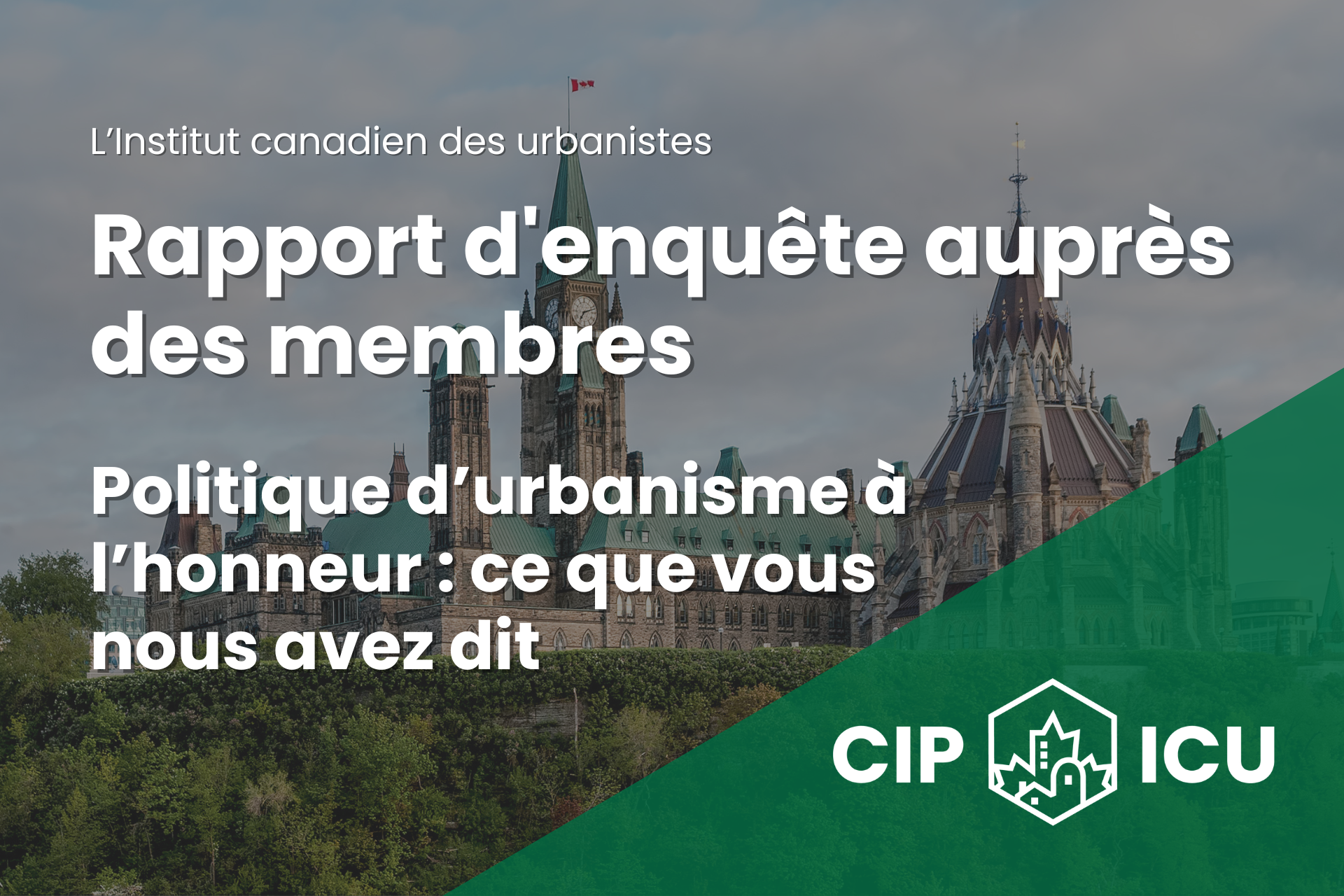 OTTAWA, 24 avril 2025 – Pendant cette élection fédérale, nous souhaitions connaître directement vos points de vue sur ce qui compte le plus dans votre travail. Du 21 mars au 4 avril, nous avons mené un sondage national qui a recueilli 766 réponses de membres de partout au pays. Vous avez partagé les plus grands enjeux auxquels vous faites face, les changements que vous souhaiteriez voir et le rôle que, selon vous, les urbanistes devraient jouer pour façonner l’avenir des collectivités canadiennes. Vos points de vue nous aident à concentrer nos efforts de défense des intérêts là où ils comptent le plus.