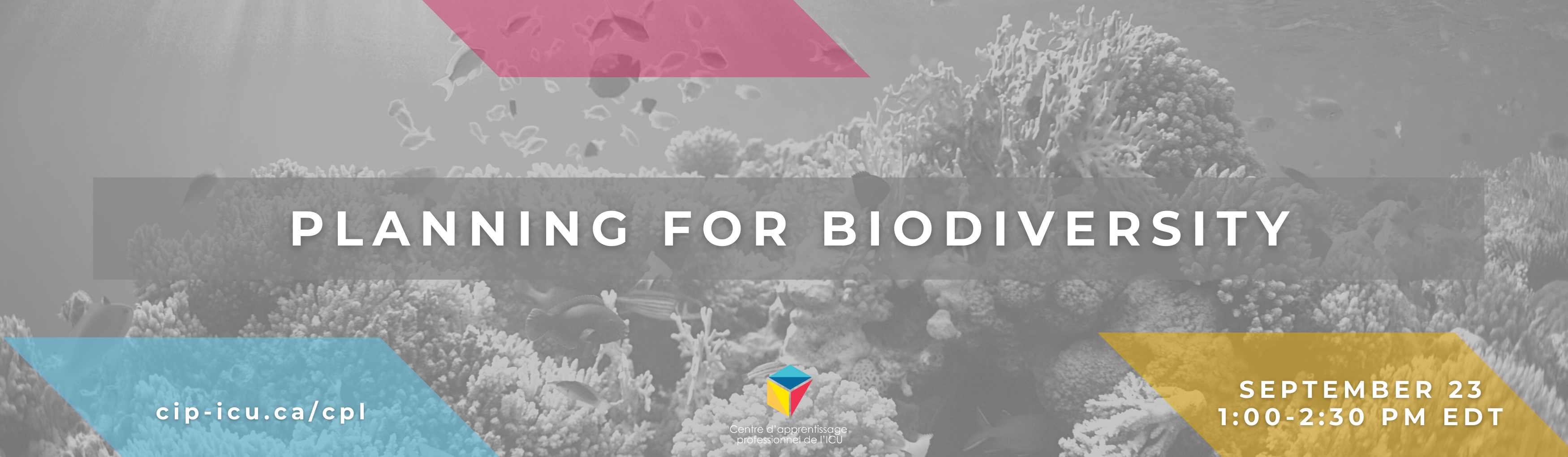 Le webinaire CPL de ce mois-ci, intitulé “Planifier pour la biodiversité”, aura lieu le 23 septembre de 13 h à 14 h 30. Le webinaire établira un lien entre le travail des planificateurs et l’objectif de développement durable n° 15, qui porte sur les moyens de protéger, de restaurer et de promouvoir l’utilisation durable des terres grâce au partage d’informations, à la gestion et au travail intersectoriel.
