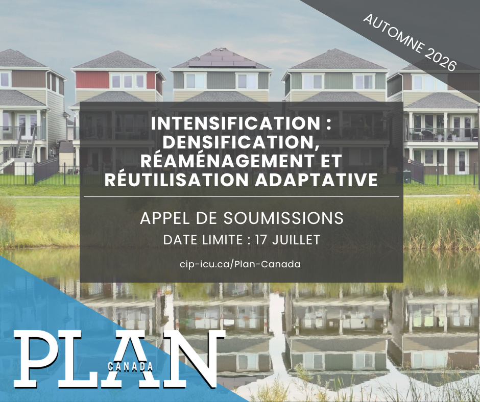 Le numéro d’automne 2026 de Plan Canada explorera des récits, des idées, des projets et des propositions liés aux trois principales formes d’intensification : la densification intercalaire, le réaménagement et la réutilisation adaptative. Nous invitons les contributions qui portent à la fois sur les réalisations passées et les orientations émergentes. Des projets innovants et des outils de politique publique aux réflexions critiques et aux perspectives communautaires, nous accueillons un large éventail de sujets liés à la densification.