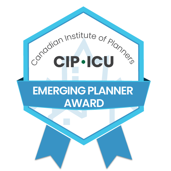 The CIP Emerging Planner Award (previously the President’s Award: Young Planner, established in 2011) celebrates the leaders of tomorrow. It recognizes the outstanding professional success and achievement – including leadership and/or service to the profession – of a Canadian planner within their first ten years of professional planning experience.